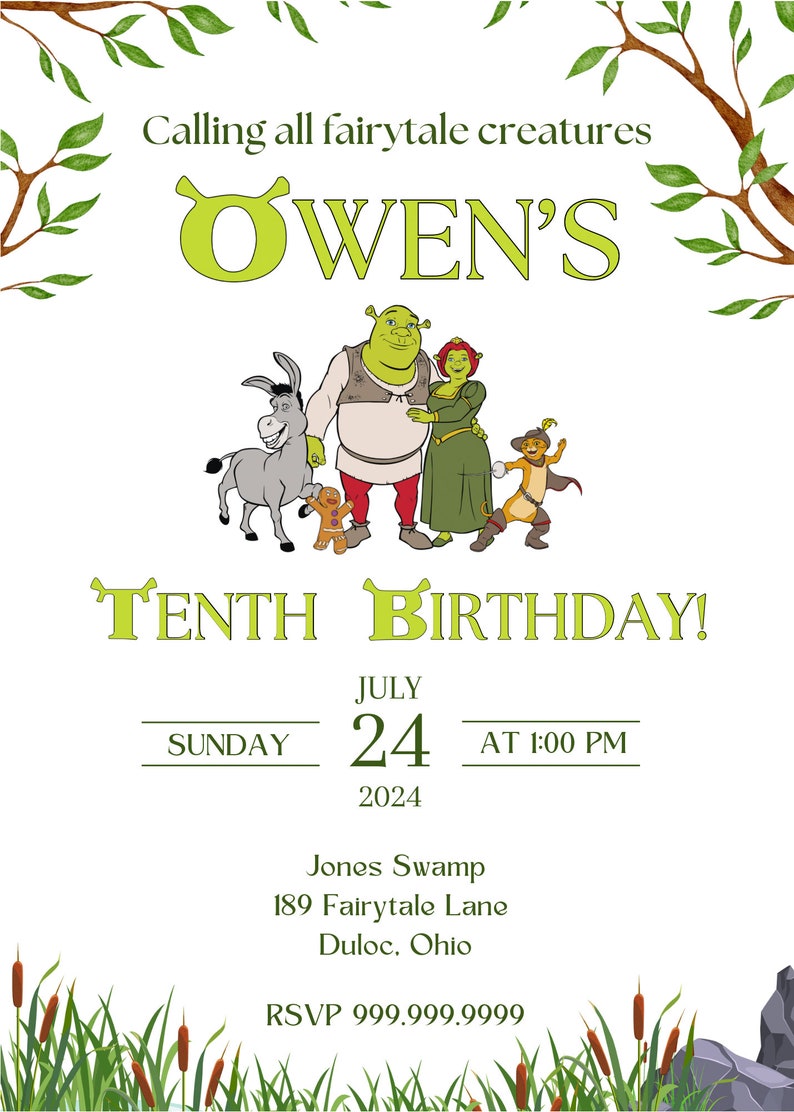 FREE Shrek Invitation Editable and Customizable WHATSAPP iMESSAGE