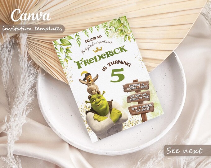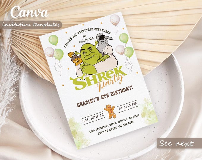 22 Shrek Canva Birthday Invitation Templates Targeta de cumpleaños