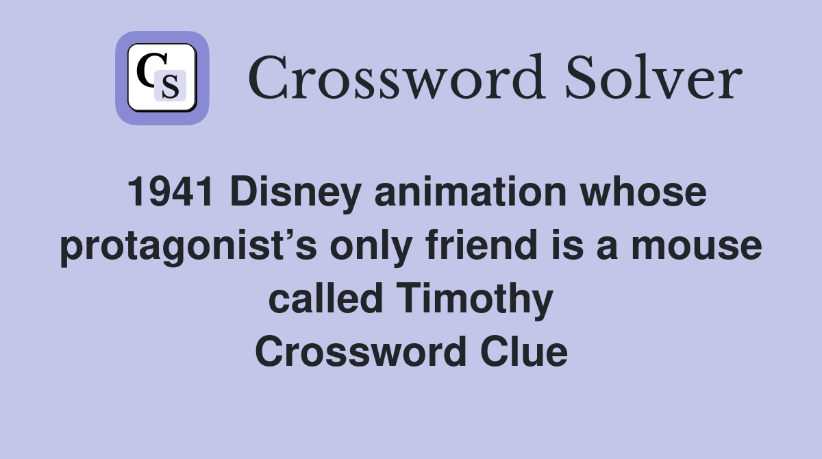 1941 Disney animation whose protagonist s only friend is a mouse called