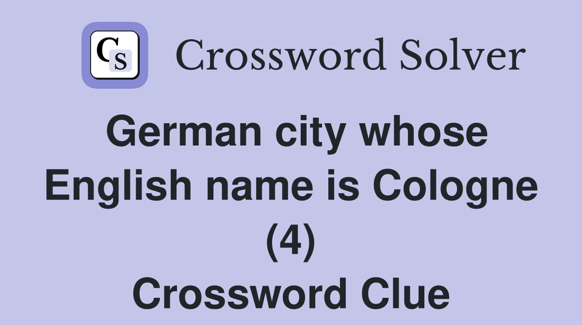 German city whose English name is Cologne (4) Crossword Clue Answers