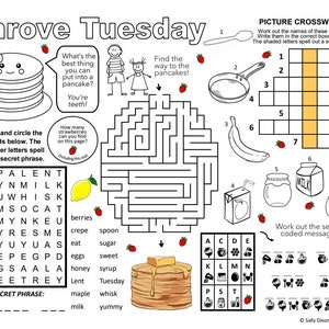 Shrove Tuesday Pancake Day Puzzle Sheet Digital Download Printable