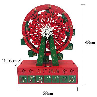 Polar Elegance Xmas Wooden Ferris Wheel Advent Calendar W/drawers And