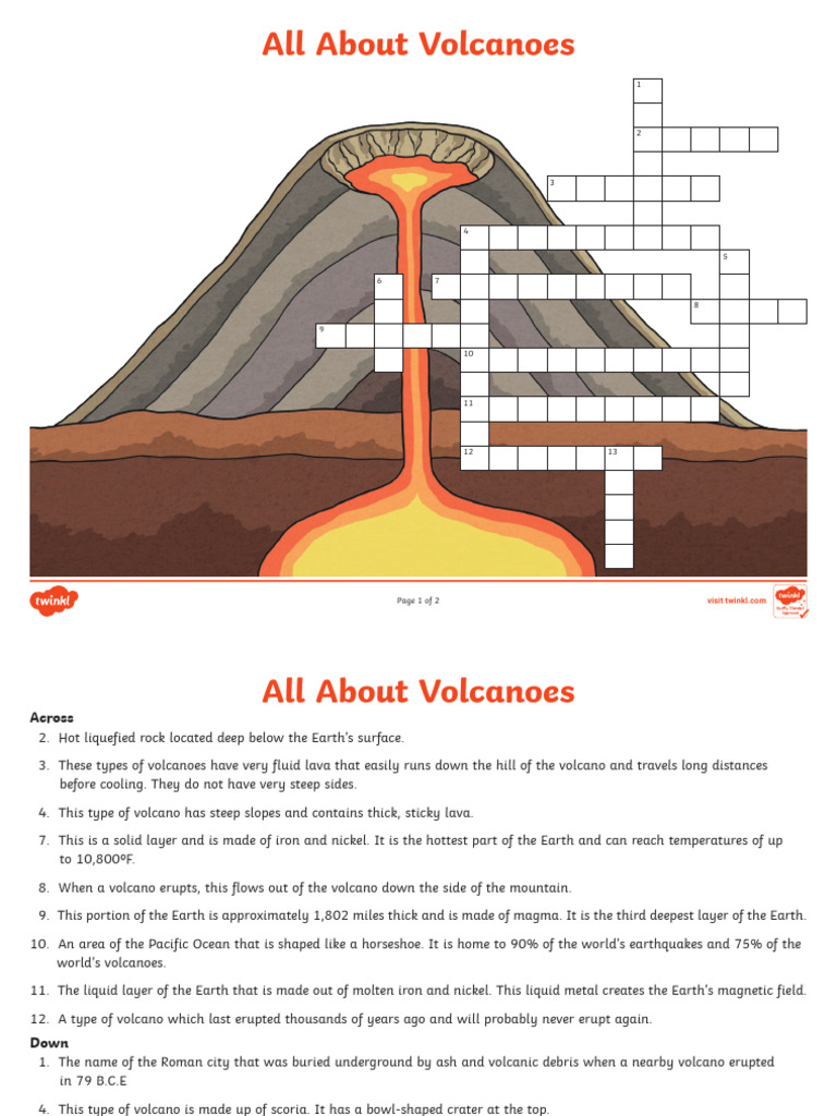 Volcano Crossword Puzzle Printable Printable crossword puzzles