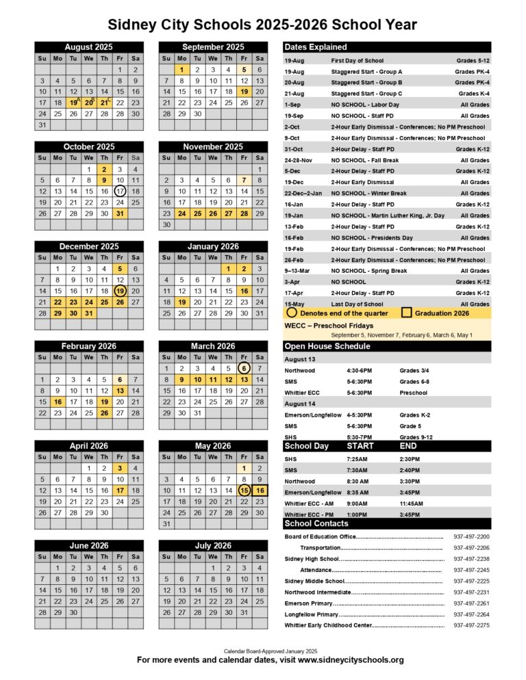 Sidney City Schools Calendar 25 26 Revised PDF EduCounty