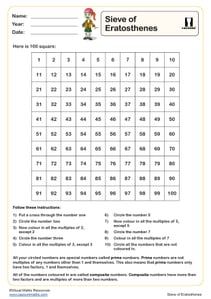 Sieve of Eratosthenes Worksheet PDF printable Number Worksheets