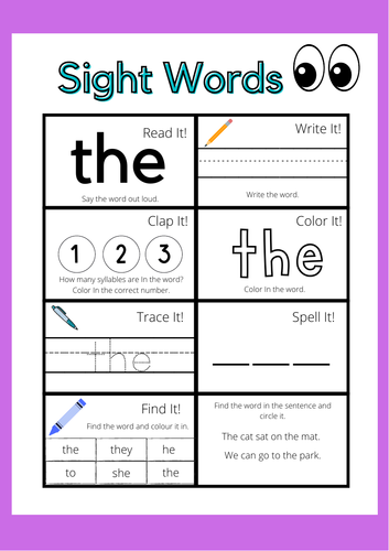 Sight Word Worksheets