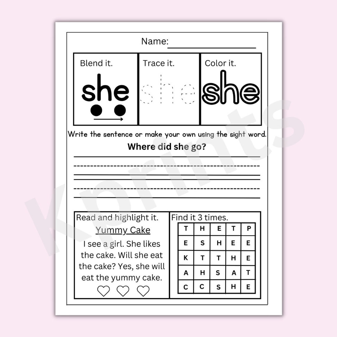 Sight Word Worksheets Printable Sight Word Practice Learn to Etsy