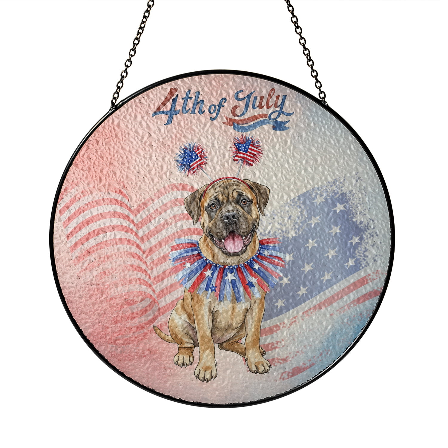 4th of July Bullmastiff Celebrates Independence Day Stained Glass