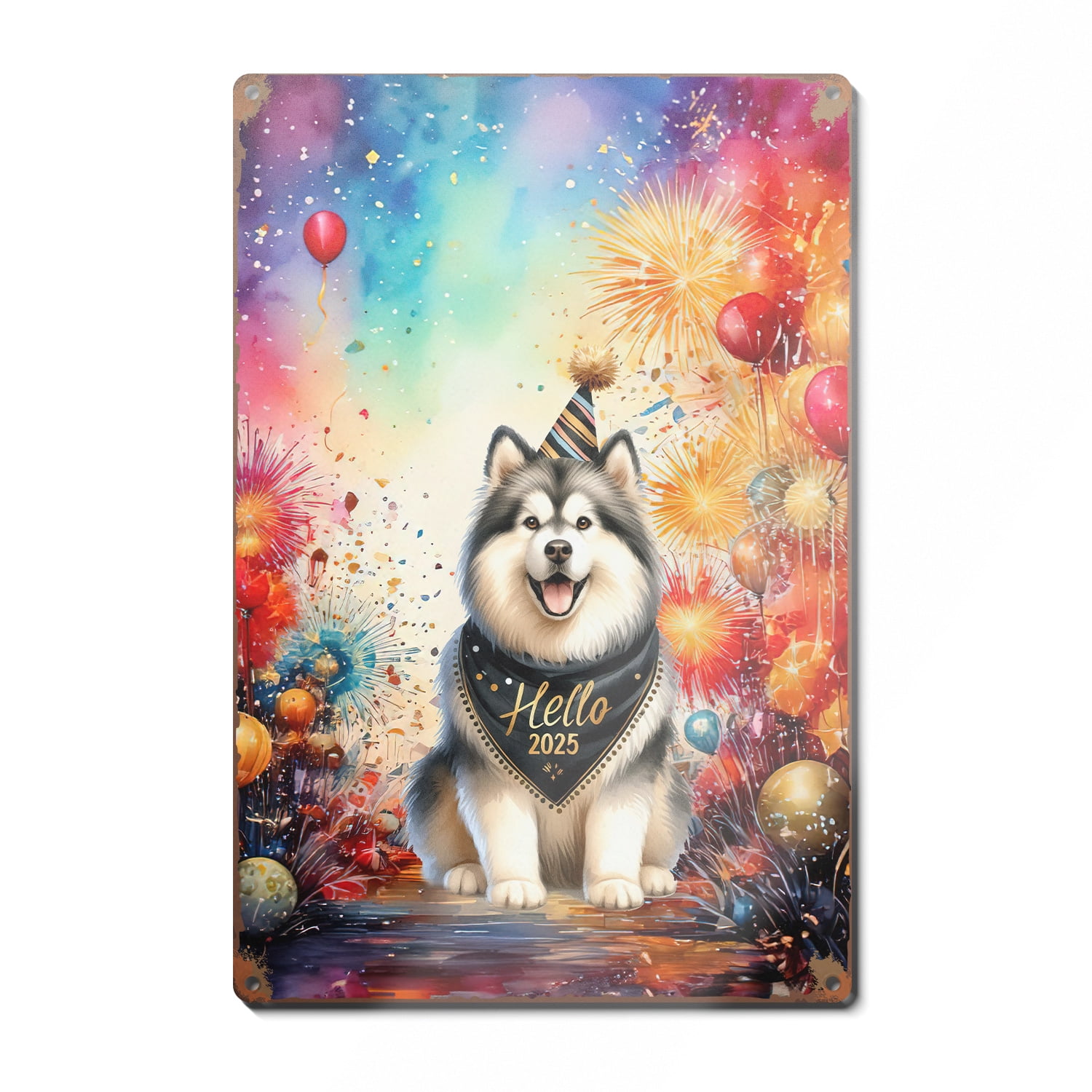 Hello 2025 Alaskan Malamute Celebrates Happy New Year Firework Balloon