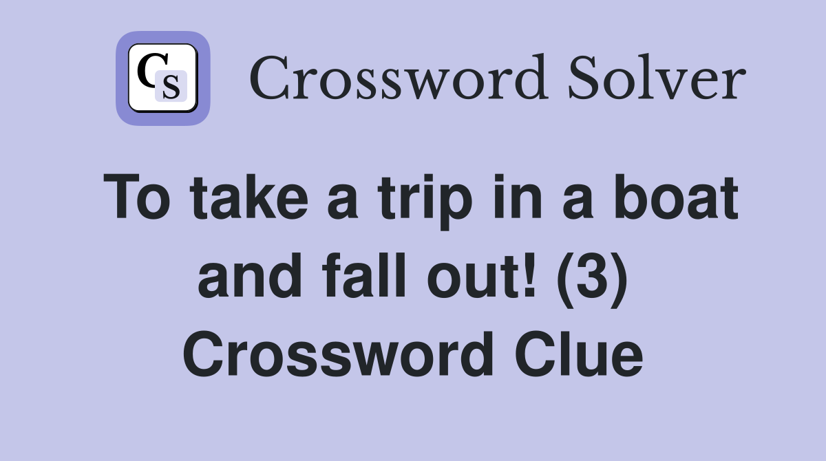 To take a trip in a boat and fall out (3) Crossword Clue Answers