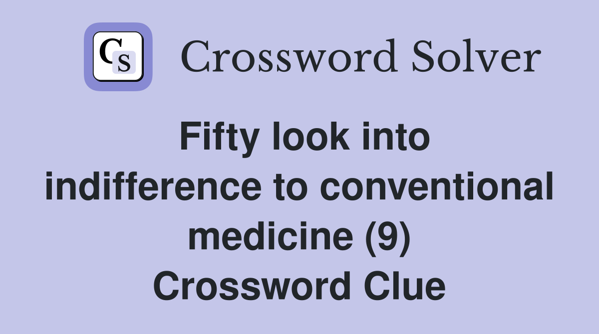Fifty look into indifference to conventional medicine (9) Crossword