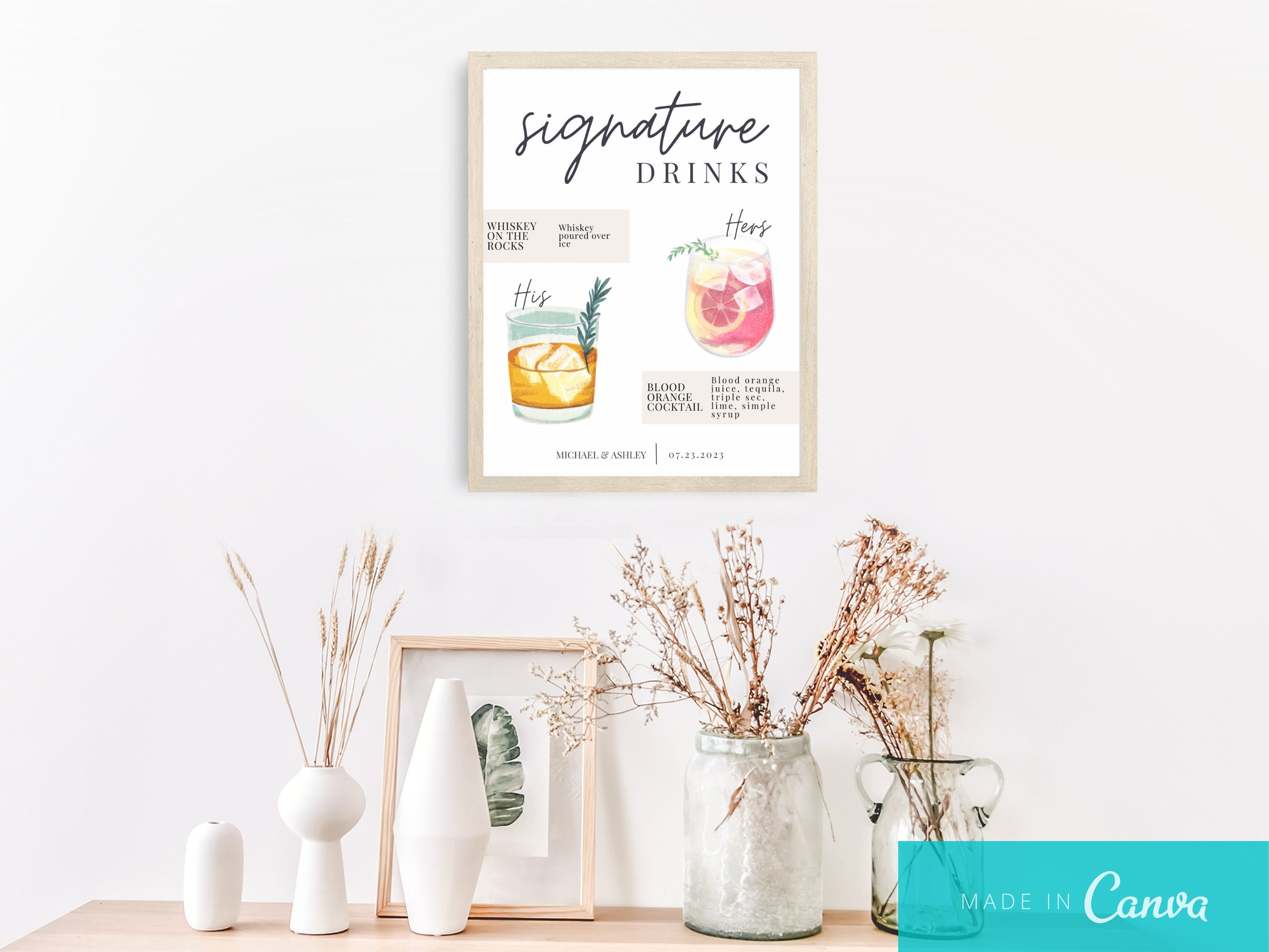 Signature Drink Sign Template Signature Cocktail Sign Minimalist