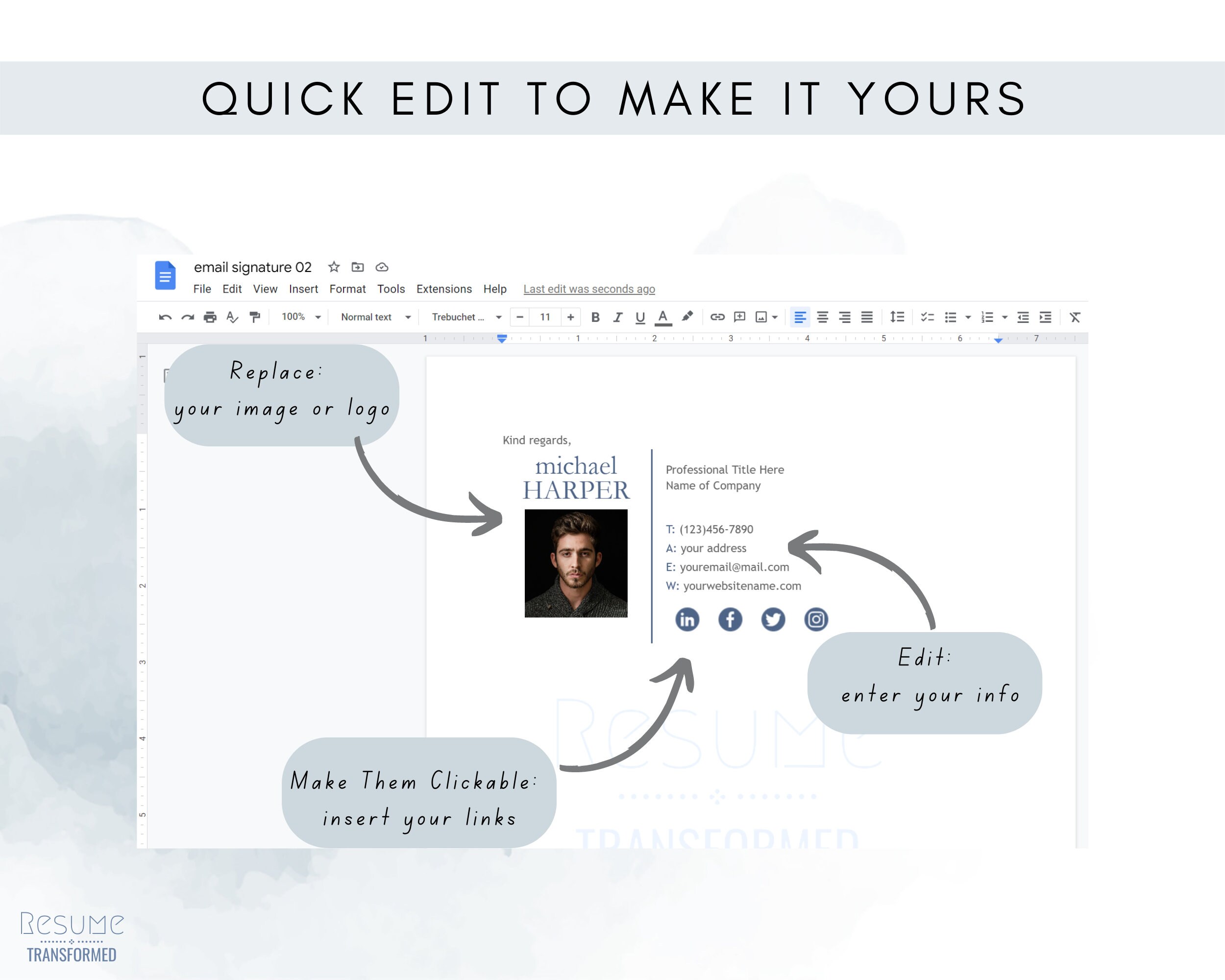 Gmail Email Signature Editable Template Clickable Signature Digital