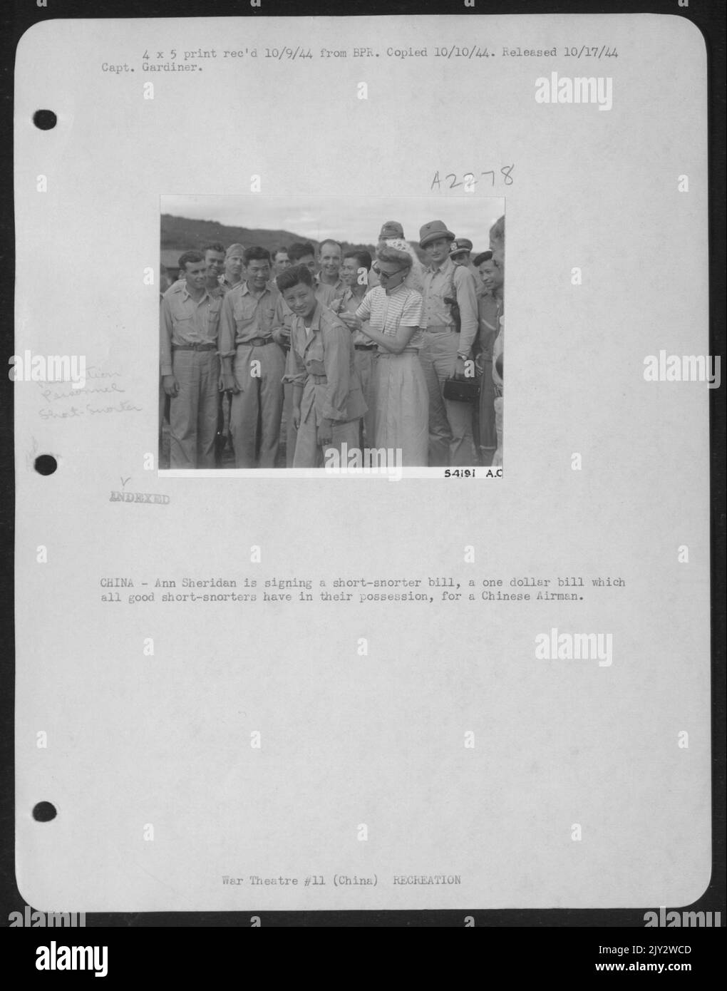 CHINA Ann Sheridan is signing a short snorter bill a one dollar bill