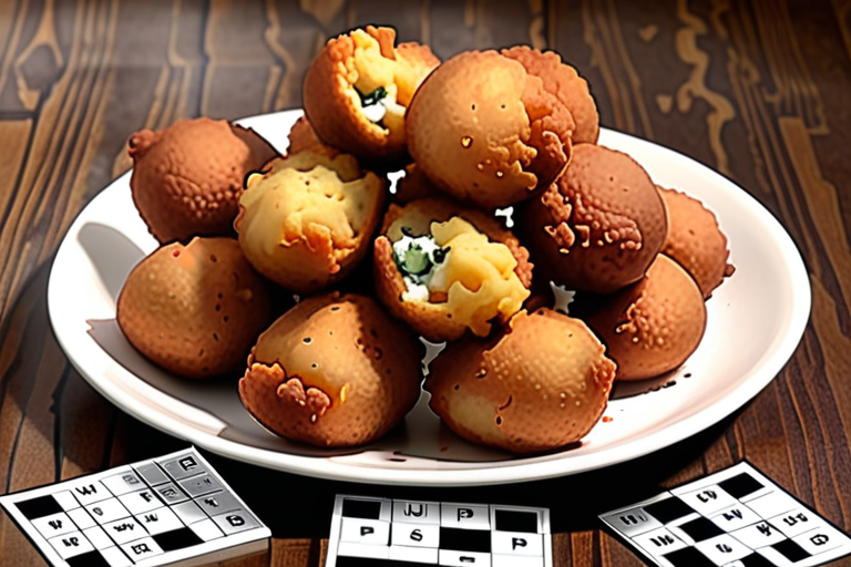 Delicious Golden Brown Snacks Served on a Plate with Crossword Puzzle