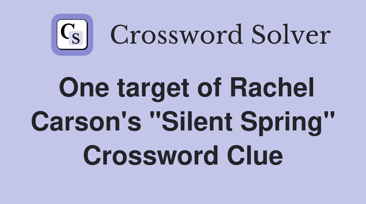 One target of Rachel Carson #39 s quot Silent Spring quot Crossword Clue Answers