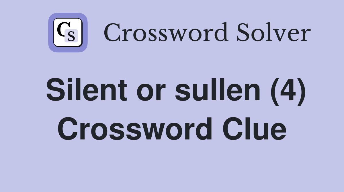 Silent or sullen (4) Crossword Clue Answers Crossword Solver