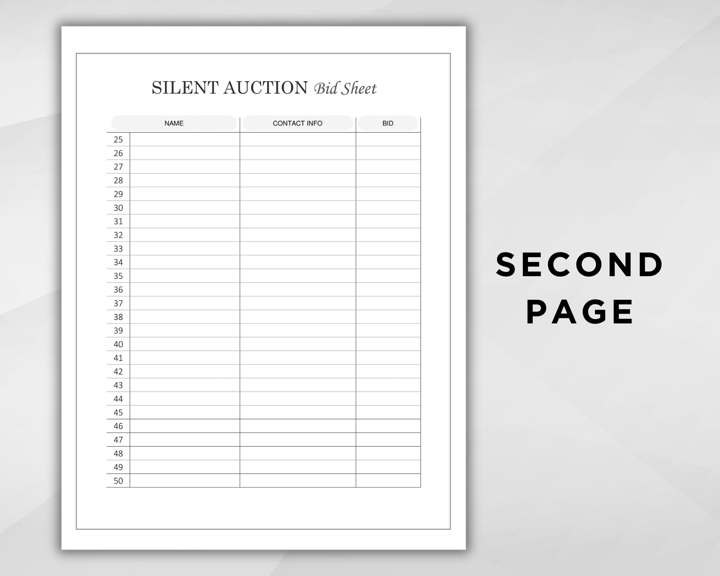 Silent auction sheets template Artofit
