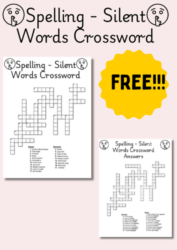 Spelling Silent Words Crossword Teaching Resources