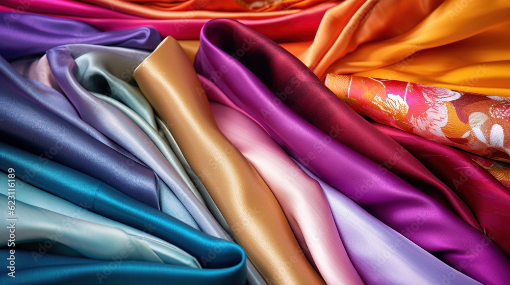 Premium Photo A close up of many colorful silks clothes