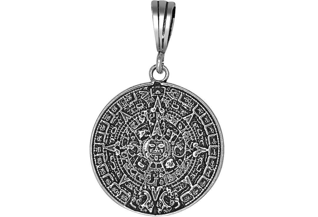 Aztec Calendar Necklace 925 Sterling Silver Mayan Calendar Pendant