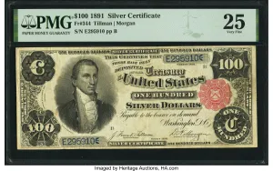 1891 One Hundred Dollar Silver Certificate World Banknotes Coins