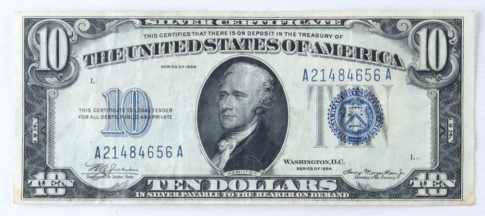 1934 $10 Silver Certificate (BLUE SEAL) The Patriotic Mint