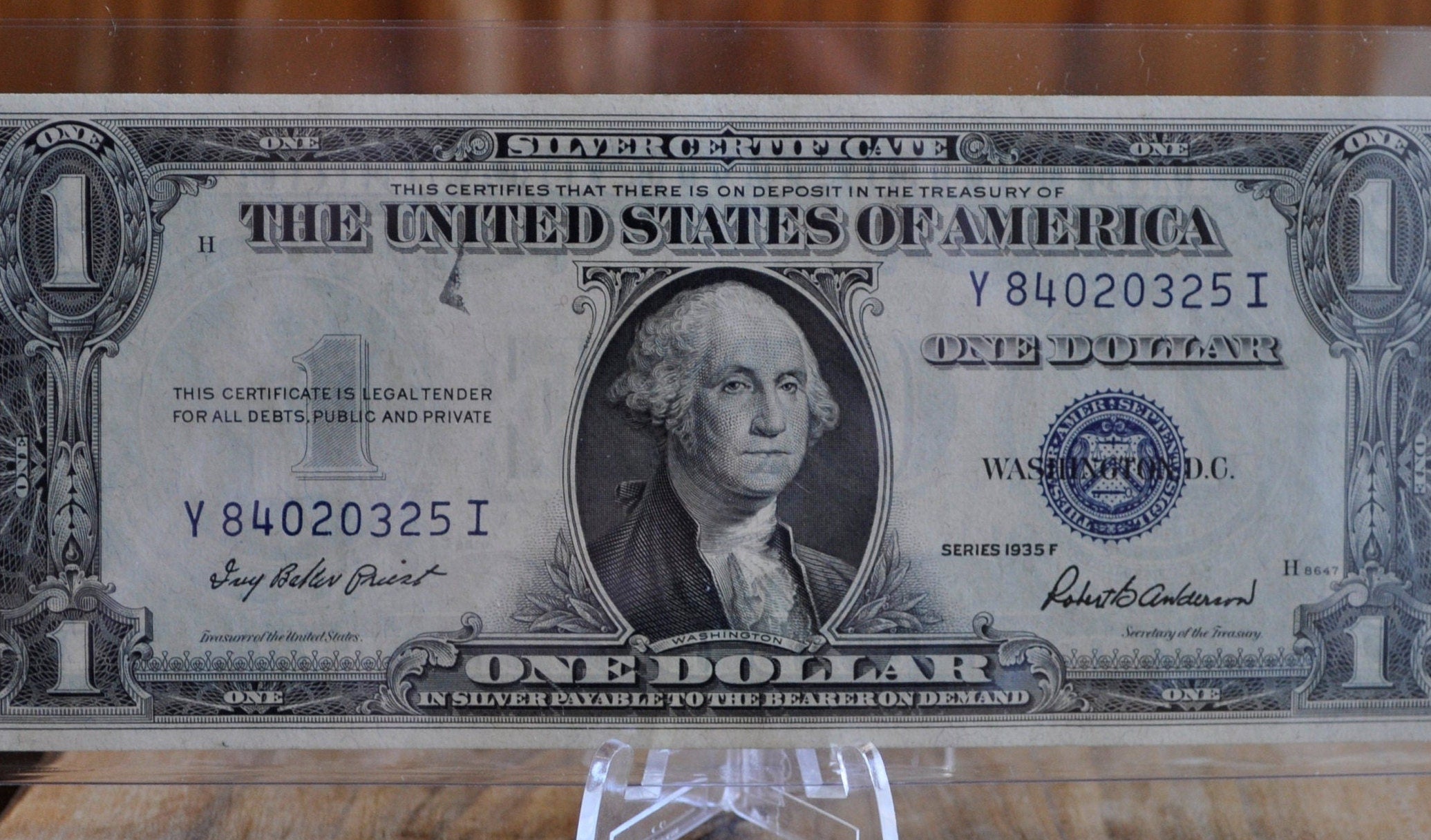1935 F SERIES SILVER CERTIFICATE $1 DOLLAR BLUE SEAL IN SLEVE