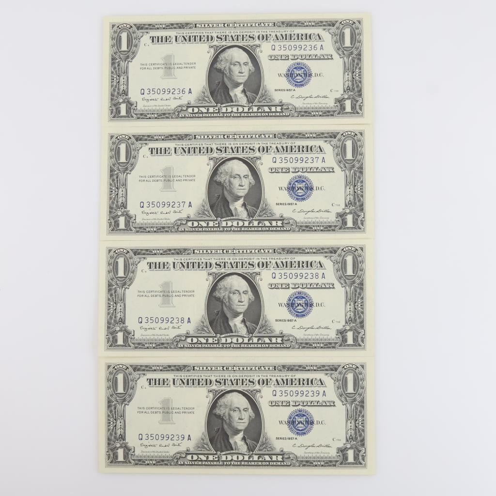 1957 A US Silver Certificate One Dollar Sequential 4 Pieces Property