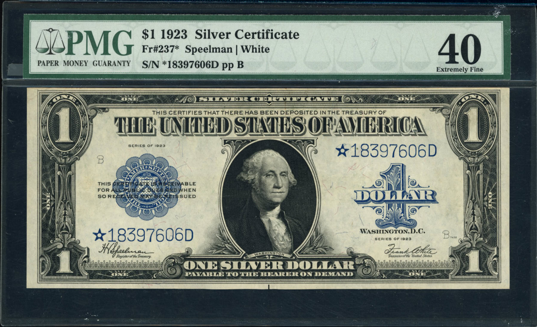 Fr 237* 1923 $1 Silver Certificate Star Note Speelman / White PMG