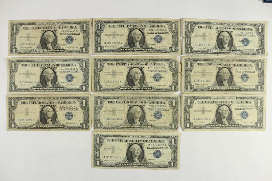 10 Assorted 1957 $1 Silver Certificates
