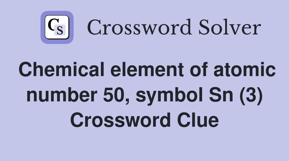 Chemical element of atomic number 50 symbol Sn (3) Crossword Clue