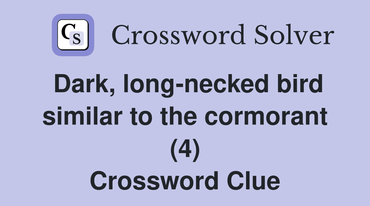 Dark long necked bird similar to the cormorant (4) Crossword Clue