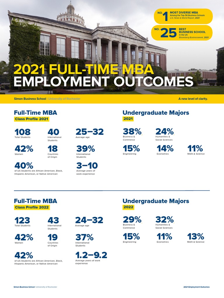 Simon Business School 2021 Full Time MBA Employment Outcomes PDF