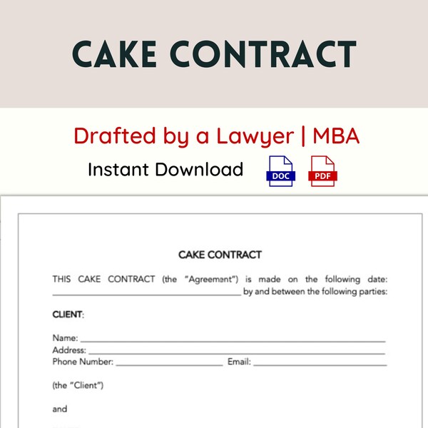 Cake Contract Template fully Editable Cake Contract diy Cake Contract