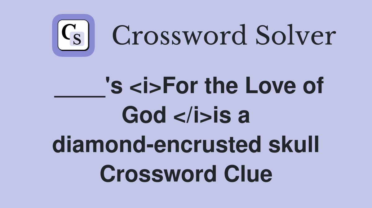 s For the Love of God is a diamond encrusted skull Crossword Clue