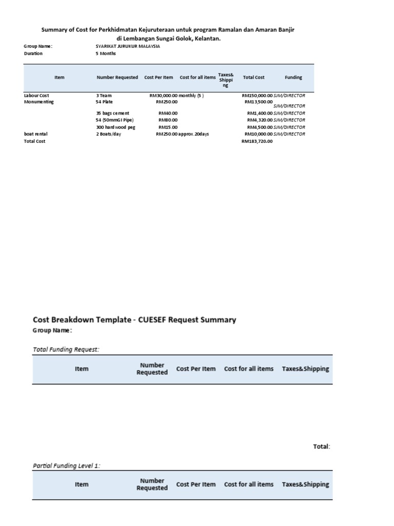 Free Project Cost Breakdown Template to Edit Online