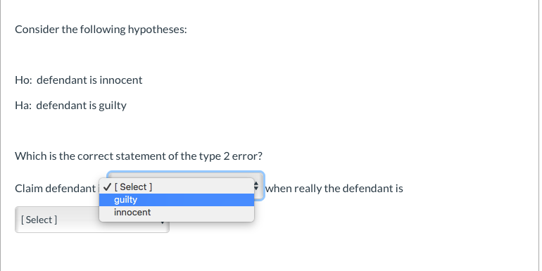 Solved Consider the following hypotheses Ho: defendant is Chegg com