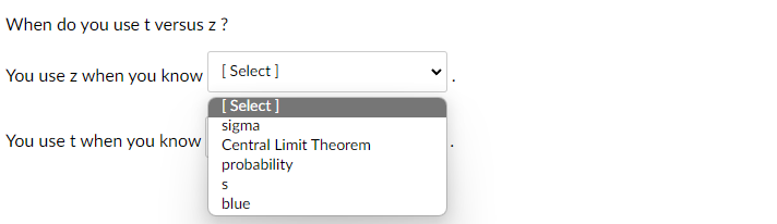 Solved When do you use t versus z ? You use z when you know Chegg com