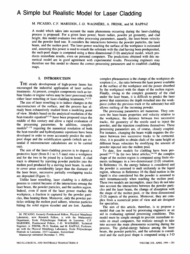 4 A Simple but Realistic Model for Laser Cladding PDF Physical