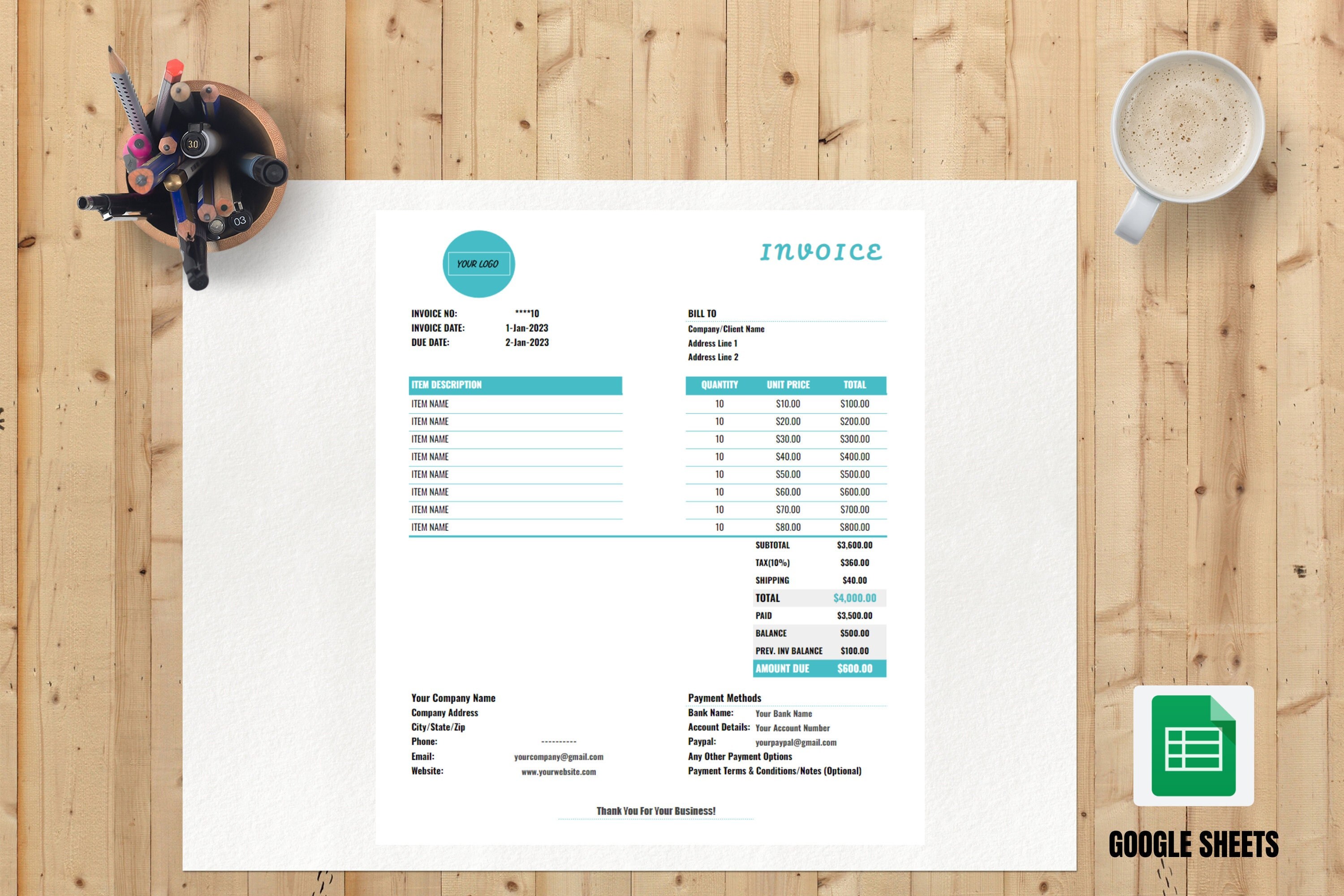 Google Sheets Invoice Template (Free) oto