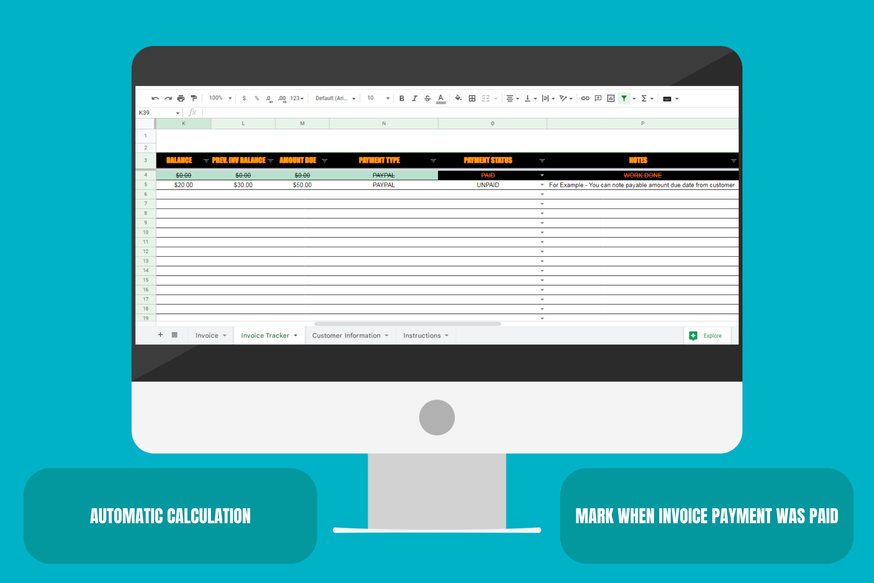 Google Sheets Invoice Template Invoice Tracker Business Invoice