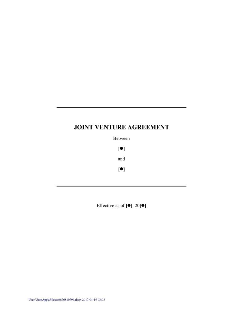 Joint Venture Agreement Template Word