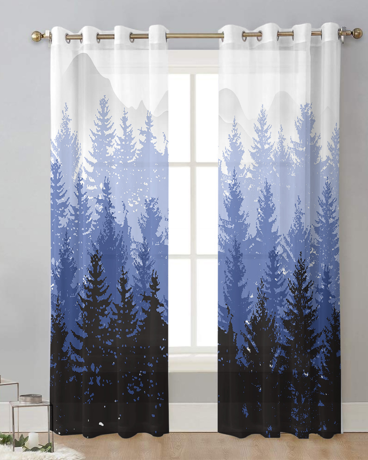 Forest Summer Simple Gradient Tulle Curtain for Living Room Bedroom