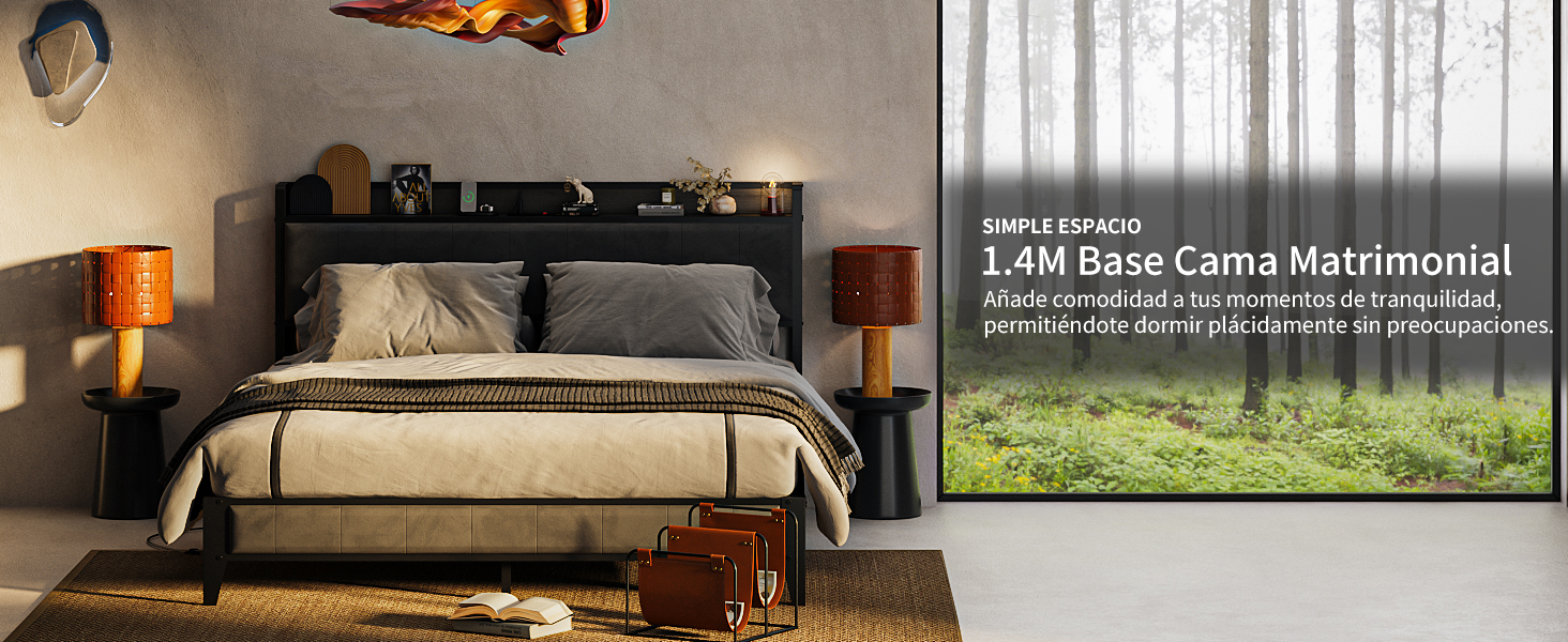 SIMPLE ESPACIO 1 4M Base Cama Matrimonial con Toma de Corriente Base de