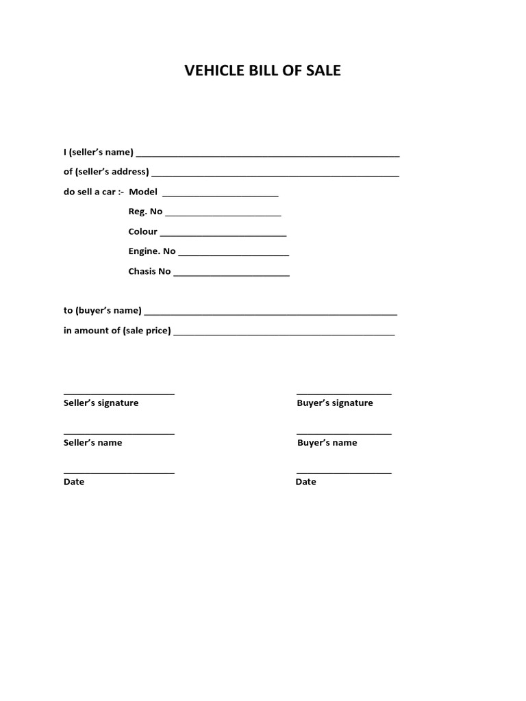 Simple Vehicle Bill Of Sale Template