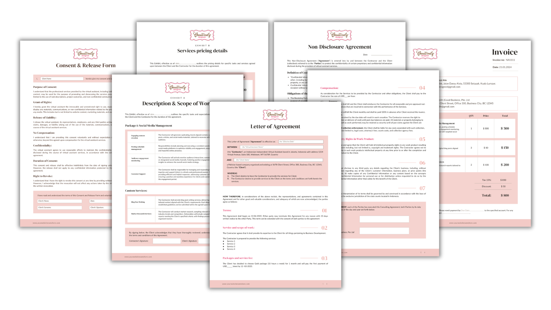 Virtual Assistant Contract Template Bundle Agreement Legal Document