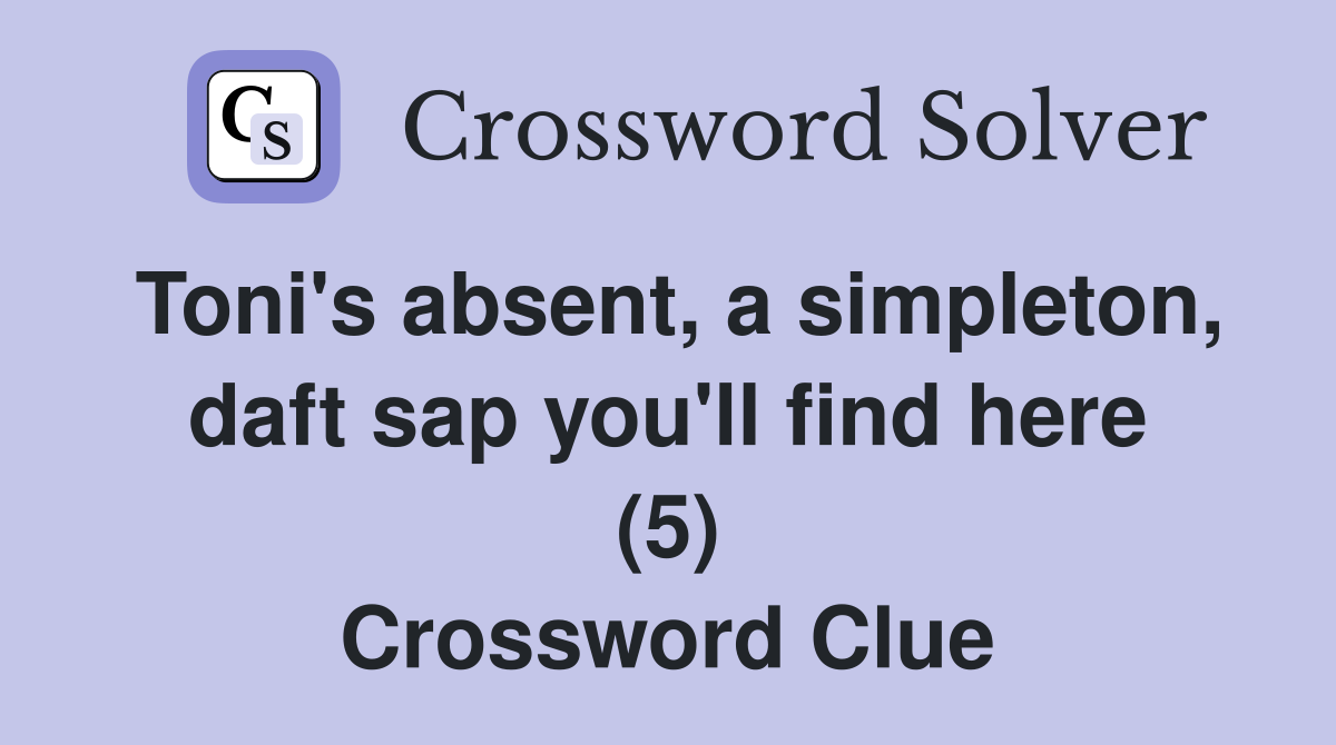 Toni s absent a simpleton daft sap you ll find here (5) Crossword