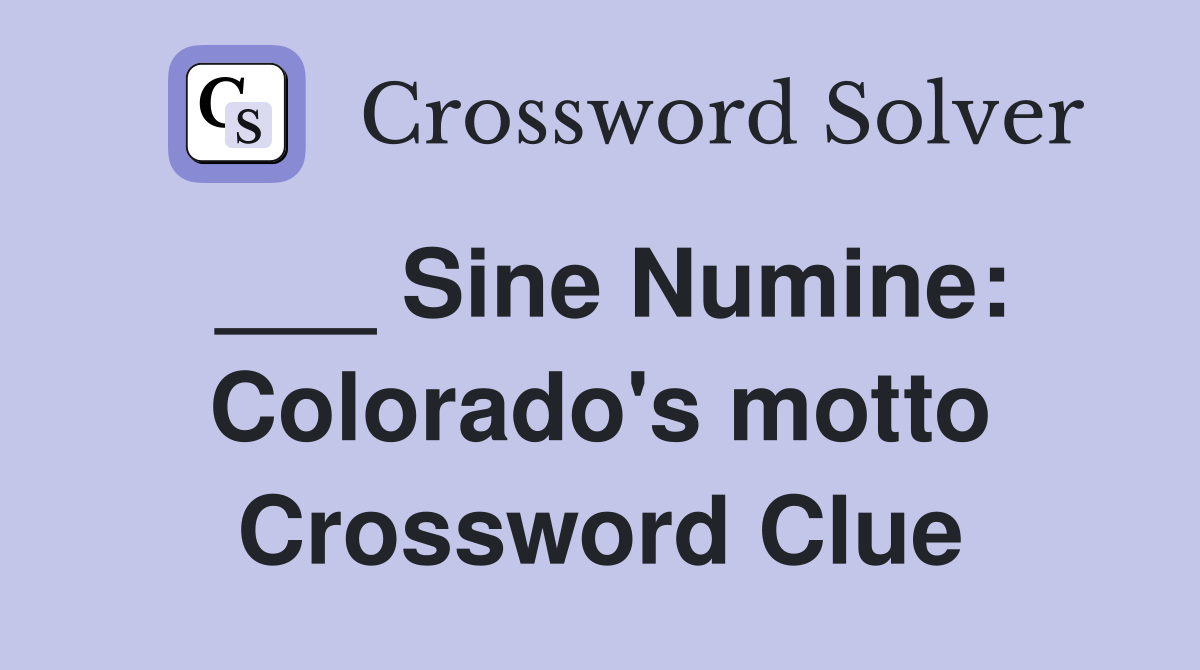 Sine Numine: Colorado #39 s motto Crossword Clue Answers Crossword Solver