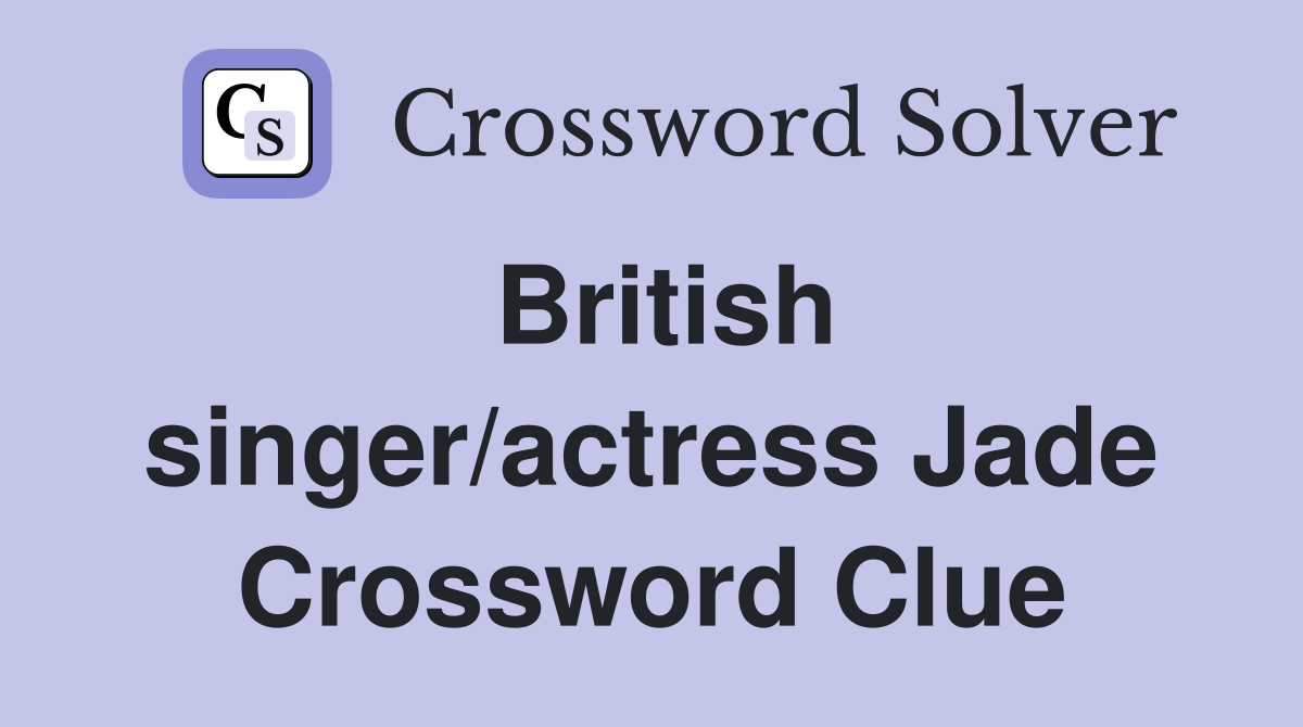 British singer/actress Jade Crossword Clue Answers Crossword Solver